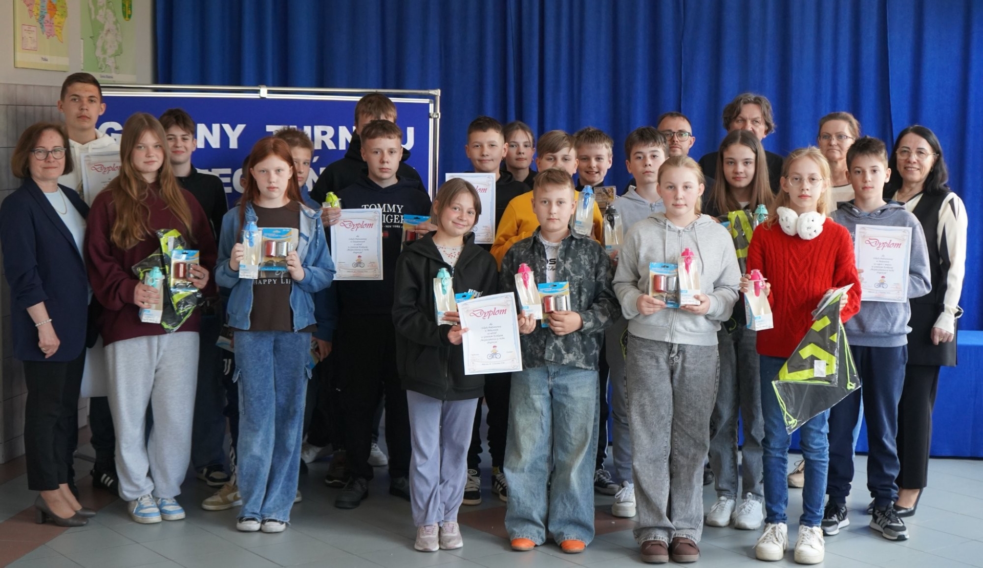 W dniu 24.04.2026r. Szkoła Podstawowa w Miłaczewie była organizatorem Gminnego Etapu Turnieju „Bezpieczeństwa w ruchu drogowym”. Do rywalizacji przystąpili uczniowie trzech szkół podstawowych z gminy Malanów. Każdą szkołę reprezentowała czteroosobowa (grupa I)i trzyosobowa (grupa II) drużyna. Skład drużyn przedstawiał się następująco: Szkoła Podstawowa w Dziadowicach - grupa I: Zuzanna Dębska, Zofia Krawczyk, Leon Kałużny i Miłosz Wieczyński; grupa II: Kacper Michalak, Tomasz Kałuża i Kornel Dziurzyński; Szkoła Podstawowa w Malanowie - grupa I: Małgorzata Misiek, Natalia Sęk, Filip Czekała i Aleksander Węs; grupa II: Stanisław Jarek, Oskar Tyma i Wojciech Kaczorowski; Szkoła Podstawowa w Miłaczewie - grupa I: Zuzanna Bruź, Lena Kostrzewa, Igor Gruszczyński i Natan Wasik, grupa II: Lena Bruź, Laura Przygońska i Stanisław Tomczyk. Turniej składał się z trzech etapów: rozwiązanie testu wiedzy obejmującej zagadnienia dotyczące zasad i przepisów ruchu pieszych i rowerzystów, hulajnóg elektrycznych, motorowerzystów, znaków drogowych, sytuacji w ruchu drogowym, wyznaczania prawidłowej kolejności przejazdu przez skrzyżowanie, pokonanie toru przeszkód oraz wykazanie się umiejętnościami udzielania pierwszej pomocy przedmedycznej. Nad przebiegiem turnieju czuwała komisja w składzie: Beata Myszyńska – dyrektor Szkoły Podstawowej w Miłaczewie, mł. asp.Michał Pękacz - przedstawiciel Komendy Powiatowej Policji w Turku, Elżbieta Smak – pielęgniarka, Jacek Stasińczuk, Barbara Żebruń i Aleksandra Wiczewska– opiekunowie drużyn wyżej wymienionych szkół. Poziom wiadomości i umiejętności uczniów z poszczególnych szkół był wyrównany. Po podsumowaniu wyników nastąpiło ogłoszenie i rozdanie nagród. Zwycięzcami konkursu w grupie I okazali się uczniowie ze Szkoły Podstawowej w Malanowie, a w grupie II uczniowie ze Szkoły Podstawowej w Miłaczewie i oni będą reprezentować naszą gminę w Powiatowym Turnieju „Bezpieczeństwa w ruchu drogowym”, który odbędzie się w Szkole Podstawowej nr 1 w Turku.