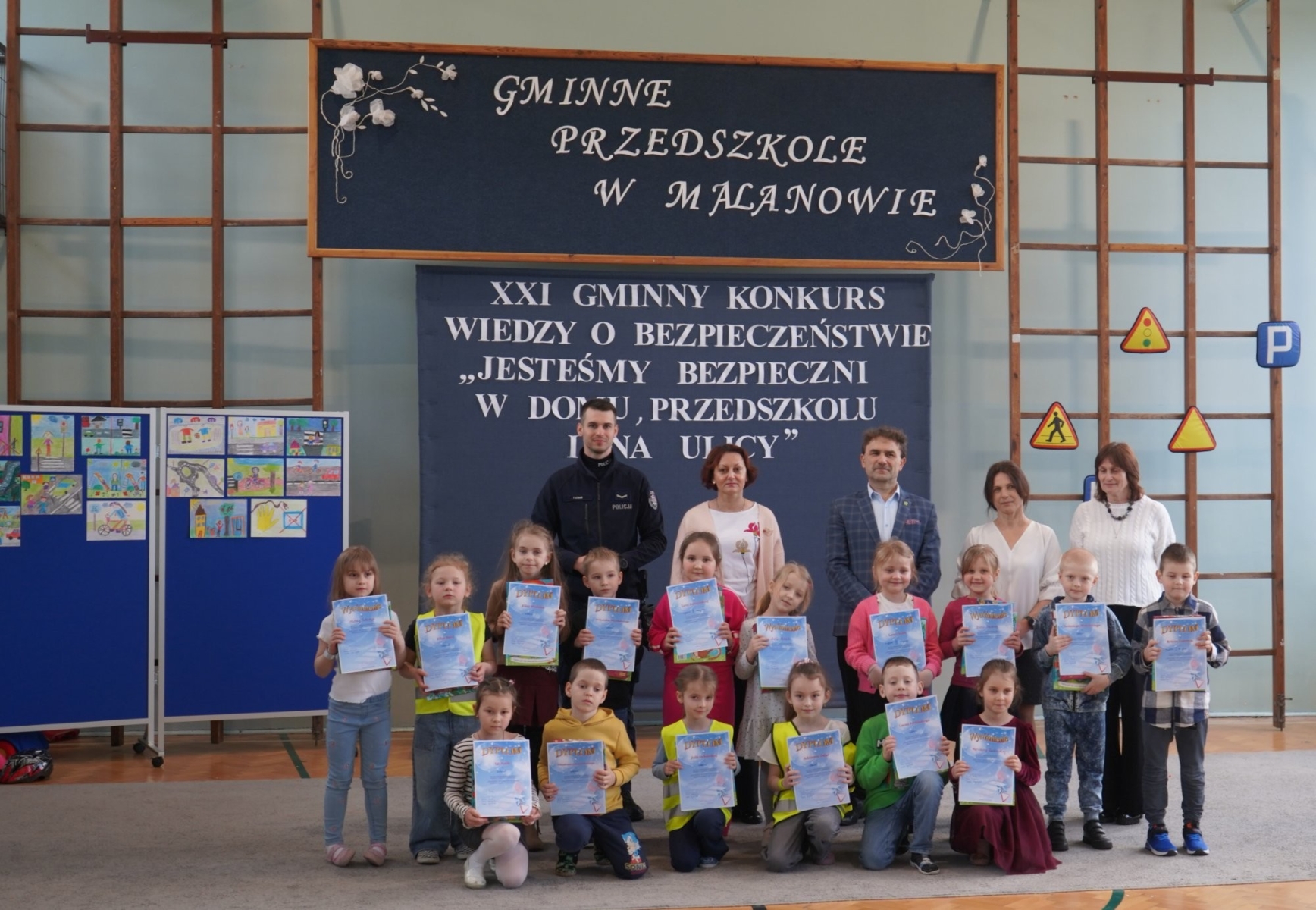 Miło nam poinformować, iż dzieci z oddziału przedszkolengo w Szkole Podstawowej w Miłaczewie znalazły się wśród laureatów XXI Gminnego Konkursu Wiedzy o Bezpieczeństwie pod hasłem „Jesteśmy bezpieczni w domu, przedszkolu i na ulicy”. Uroczyste podsumowanie odbyło się dnia 17.03.2026 r. w Gminnym Przedszkolu w Malanowie. W konkursie II miejsce zajęła Lena Kurzyńska, wyróżnienie otrzymała Zofia Wasik, a dyplom za udział otrzymali Eliza Woźniak i Aleksander Doczekalski. Po uroczystym rozstrzygnięciu konkursu, dzieci miały możliwość spotkania z funkcjonariuszem policji. Główną atrakcją było zwiedzanie samochodu policyjnego. Naszym zdolnym dzieciom gratulujemy i życzymy dalszych sukcesów plastycznych.