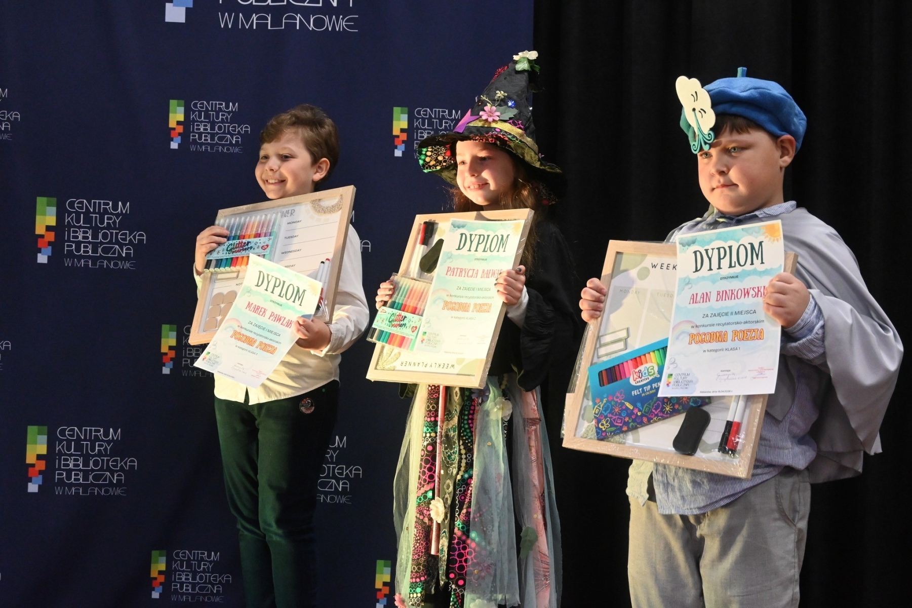 Z radością informujemy, że 15 kwietnia 2026 roku uczniowie edukacji wczesnoszkolnej Szkoły Podstawowej w Miłaczewie odnieśli wspaniałe sukcesy w Gminnym Konkursie Recytatorsko–Aktorskim „Pogodna Poezja”, organizowanym przez Centrum Kultury i Biblioteki Publicznej w Malanowie. Nasi młodzi artyści zachwycili jury swoim talentem oraz niezwykłą interpretacją poezji. Z dumą przedstawiamy ich osiągnięcia: I miejsce w kategorii klas trzecich zdobył niezawodny Marek Pawlak, który z wielkim wyczuciem zaprezentował wiersz Marii Konopnickiej „Parasol”. Również I miejsce w kategorii klas drugich wywalczyła Patrycja Bałwas, urzekając swoją interpretacją wiersza Leopolda Staffa ,,Deszcz majowy”. W kategorii klas pierwszych Alan Binkowski pięknie wyrecytował utwór „Dwa wiatry”, zdobywając II miejsce. Jesteśmy bardzo dumni z naszych uczniów. Serdecznie gratulujemy i życzymy im kolejnych sukcesów oraz niegasnącej radości z obcowania z poezją!
