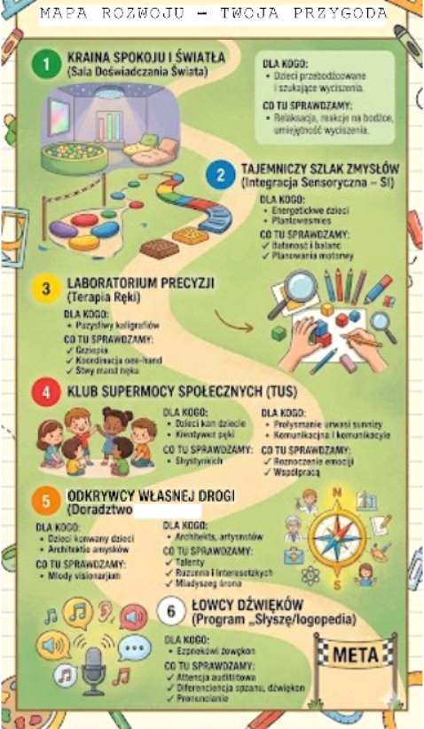 To idealna okazja, aby w swobodnej atmosferze skorzystać z wiedzy naszych specjalistów i wspólnie z dzieckiem odkryć jego mocne strony. Przygotowaliśmy program, który łączy profesjonalne wsparcie z aktywną zabawą.